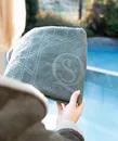 Vivi la pura eleganza con il nostro asciugamano da piscina di qualità superiore nel raffinato verde oliva chiaro. Il logo “Quellenhof See Lodge” in rilievo silver-chrome sulla parte frontale aggiunge un tocco sofisticato, mentre il patch in 3D rubber con logo “Quellenhof See Lodge” sulla chiusura ne enfatizza l’aspetto moderno. Ideale per rilassarsi a bordo piscina o nella spa della Quellenhof See Lodge.